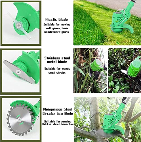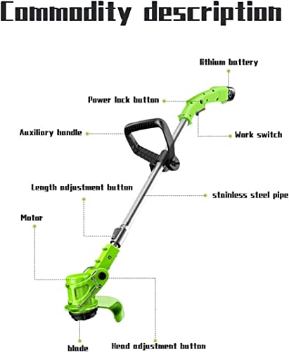 【Veiligheidsvergrendelingsknop en verstelbare machinekop】: de batterij-onkruideter vraagt de gebruiker om tegelijkertijd op de veiligheidsknop en de schakelknop te drukken om de trimmer te starten, wat effectief verkeerde bediening en potentiële gevaren voorkomt. Veelzijdig ontwerp met verstelbare machinekop voor eenvoudig snijden vanuit meerdere hoeken. Inclusief 2 lithiumbatterijen, 1 kleine draaisleutel, 4 plastic messen, 1 oplader, 2 roestvrijstalen messen en 1 mangaanstalen zaagblad.