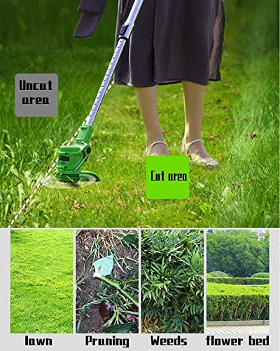 Specificaties: Accu grasmaaier, onkruidmaaier, draagbare grasmaaier met 2 accu’s en 1 oplader, draadgrasmaaier en onkruidverdelger voor tuin en tuin snoeien en maaien, gazononderhoud