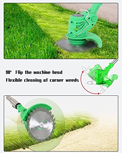 【Verstelbare maaikop en as】 Accu-aangedreven grastrimmer ondersteunt 90 ° aanpassing, waardoor u gazonsecties kunt kantelen en gemakkelijk moeilijk bereikbare hoeken kunt betreden.
