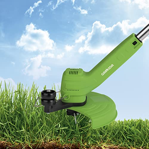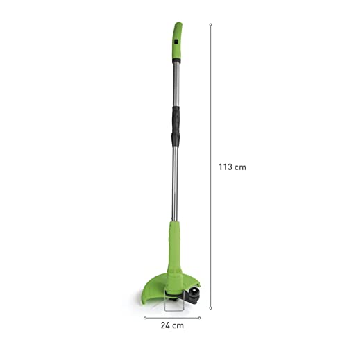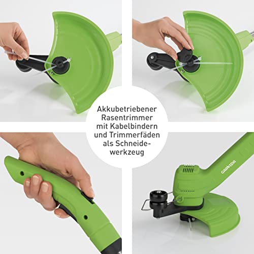 GARVIDA Accugrastrimmer, randsnijder met kabelbinders en trimmerdraden als snijgereedschap, steek- en draaisysteem, geheel zonder gereedschap, randgeleiding en in hoogte verstelbare handgreep, groen