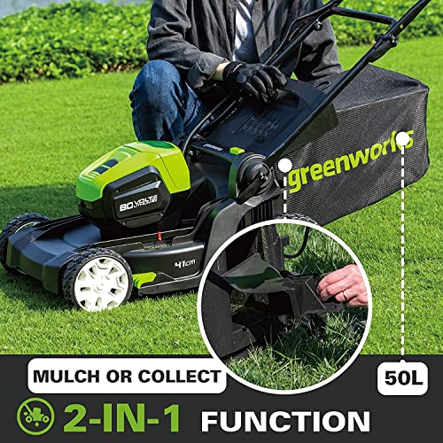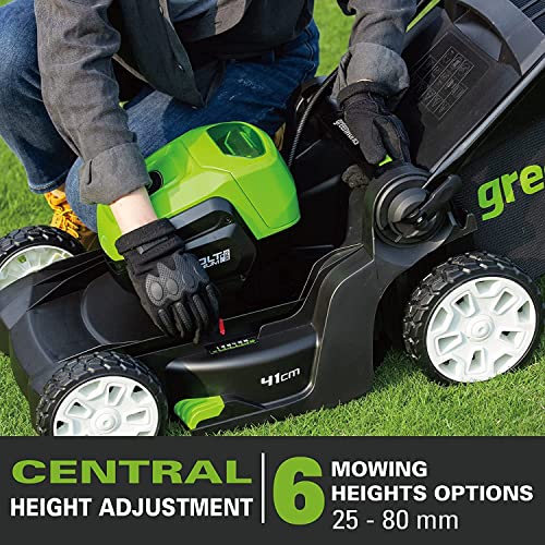 Greenworks Pro Borstelloze accugrasmaaier, maaihoogte 25-70 mm, inklapbare handgreep, met 45 liter zak (zonder accu en oplader)
