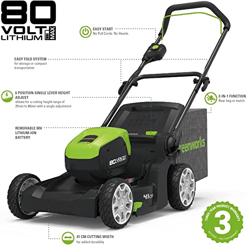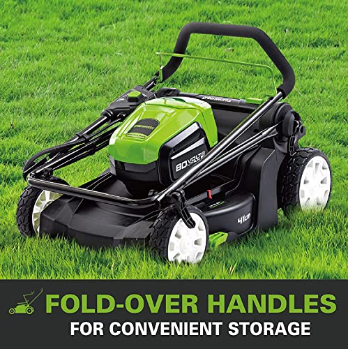 Specificaties: Greenworks Pro Borstelloze accugrasmaaier, maaihoogte 25-70 mm, inklapbare handgreep, met 45 liter zak (zonder accu en oplader)
