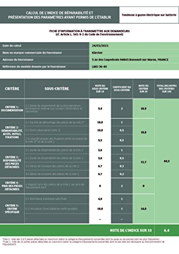 Specificaties: Kärcher LMO 36-40 Battery accu grasmaaier (maaibreedte 40 cm, snijhoogte 20-70 mm, grasopvangbak 50 liter, incl. mulchkit, oppervlakteprestatie per acculading 550 m²)