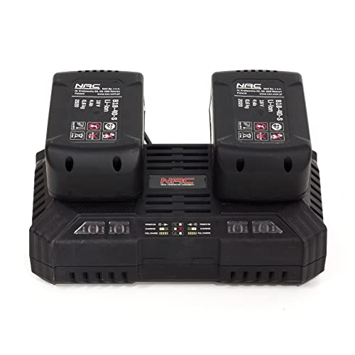 Specificaties: NAC accu grasmaaier 18V, maaibreedte: 43 cm, incl. 2 Li-Ion accu’s 4,0Ah en dubbele oplader 4,0A, 50L mand, instelbare maaihoogte, mulchfunctie, LB36-43-2B40-S