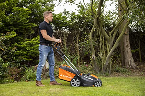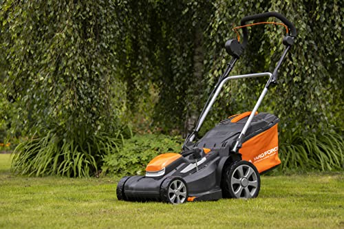 Yard Force 20 V accu-grasmaaier met 2 x 2,5 Ah accu, 34 cm maaibreedte, 25-75 mm variabele maaihoogteverstelling, 35 l hybride opvangzak, LM C34A, zwart/oranje