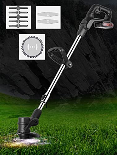 【Drie messencombinatie】De draadloze grasmaaier is uitgerust met drie soorten snijkoppen: kunststof mes is geschikt voor het maaien van zacht gras, roestvrijstalen metalen mes is geschikt voor het maaien van gazon, onkruid en kleine struiken, mangaanstalen cirkelzaagblad is geschikt voor dikker gras maaien Struiktakken. Het mes is scherp en sterk voor snelle sneden.