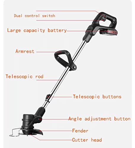 【Verstelbare telescopische paal】De hoogte van de telescoopsteel van de draadloze grasmaaier kan naar behoefte vrij worden aangepast. Verstelbare telescoopsteel 36 cm. De werkhoogte kan naar behoefte vrij worden aangepast om de druk op de taille te verminderen. Zowel ouderen als vrouwen kunnen er gemakkelijk gebruik van maken.